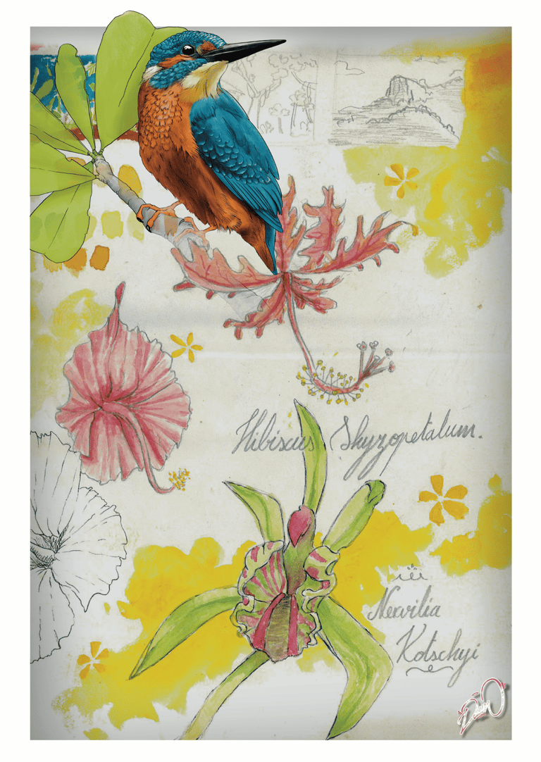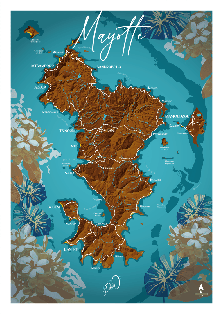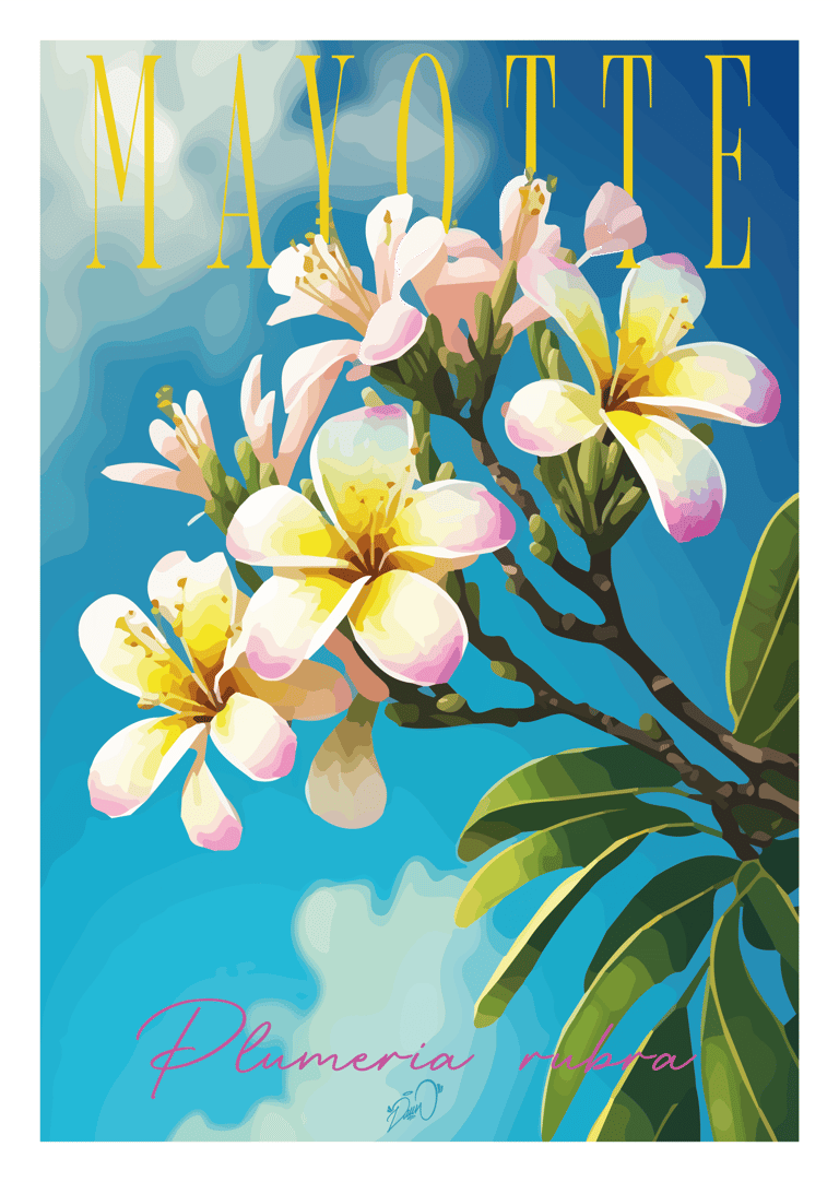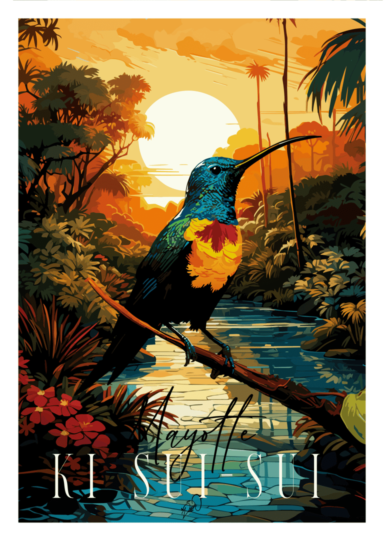 Série d'impressions fines mêlant faune, flore et cultures traditionnelles de l'île de Mayotte. Ratio 2:3 sur papier 200g/m². Conception entre dessin, Procreate & Adobe Illustrator.